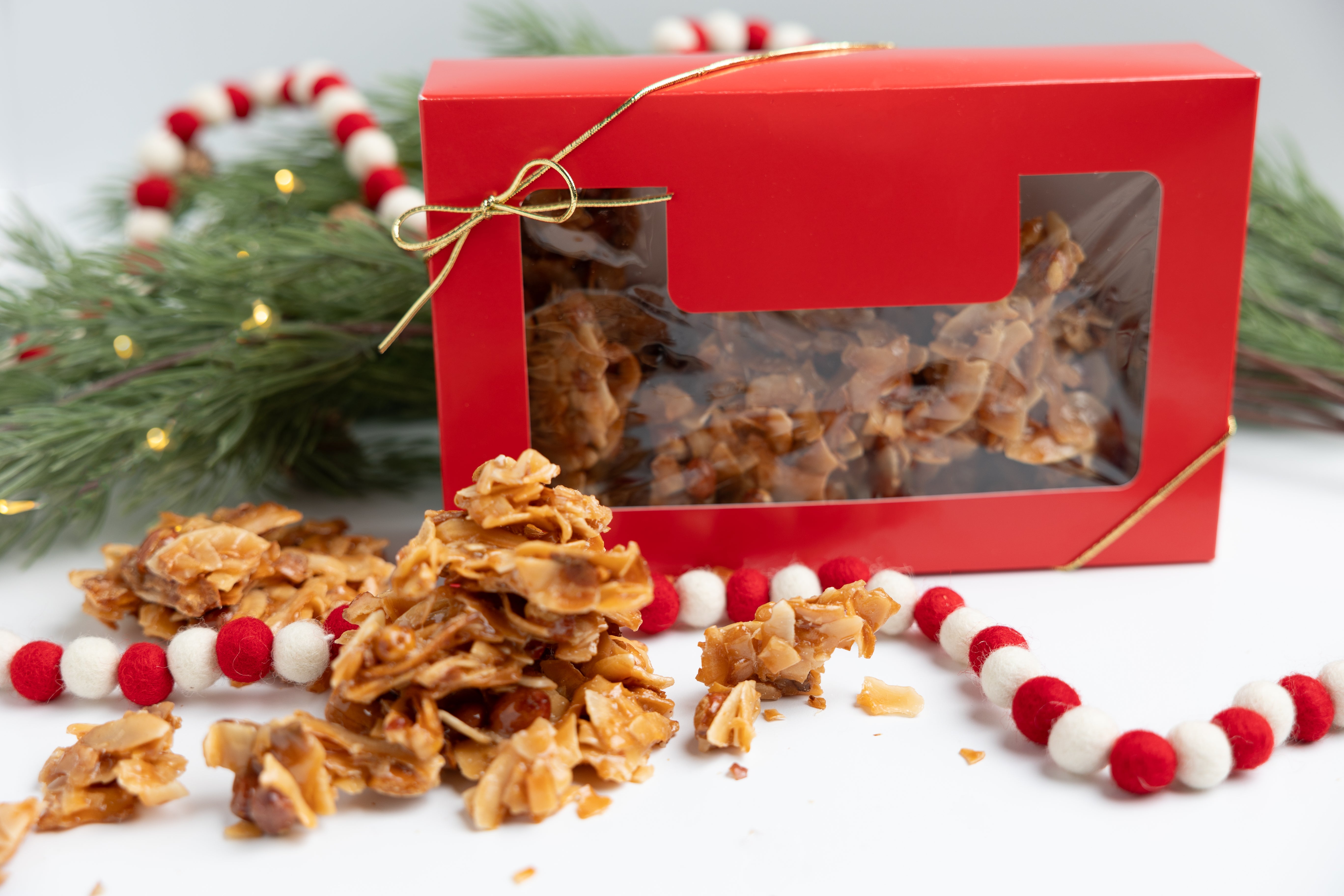 Betty Jane takes great pride in producing this Holiday Specialty! Betty Jane's Coconut Brittle is made with the finest Philippine chipped coconut and jumbo Spanish peanuts. The brittle is rich and buttery.