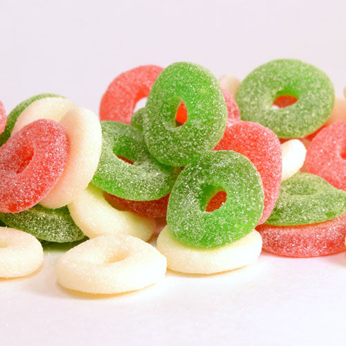 For gummy lovers everywhere, enjoy these holiday crystallized gummi wreaths in flavors of cherry and lime.