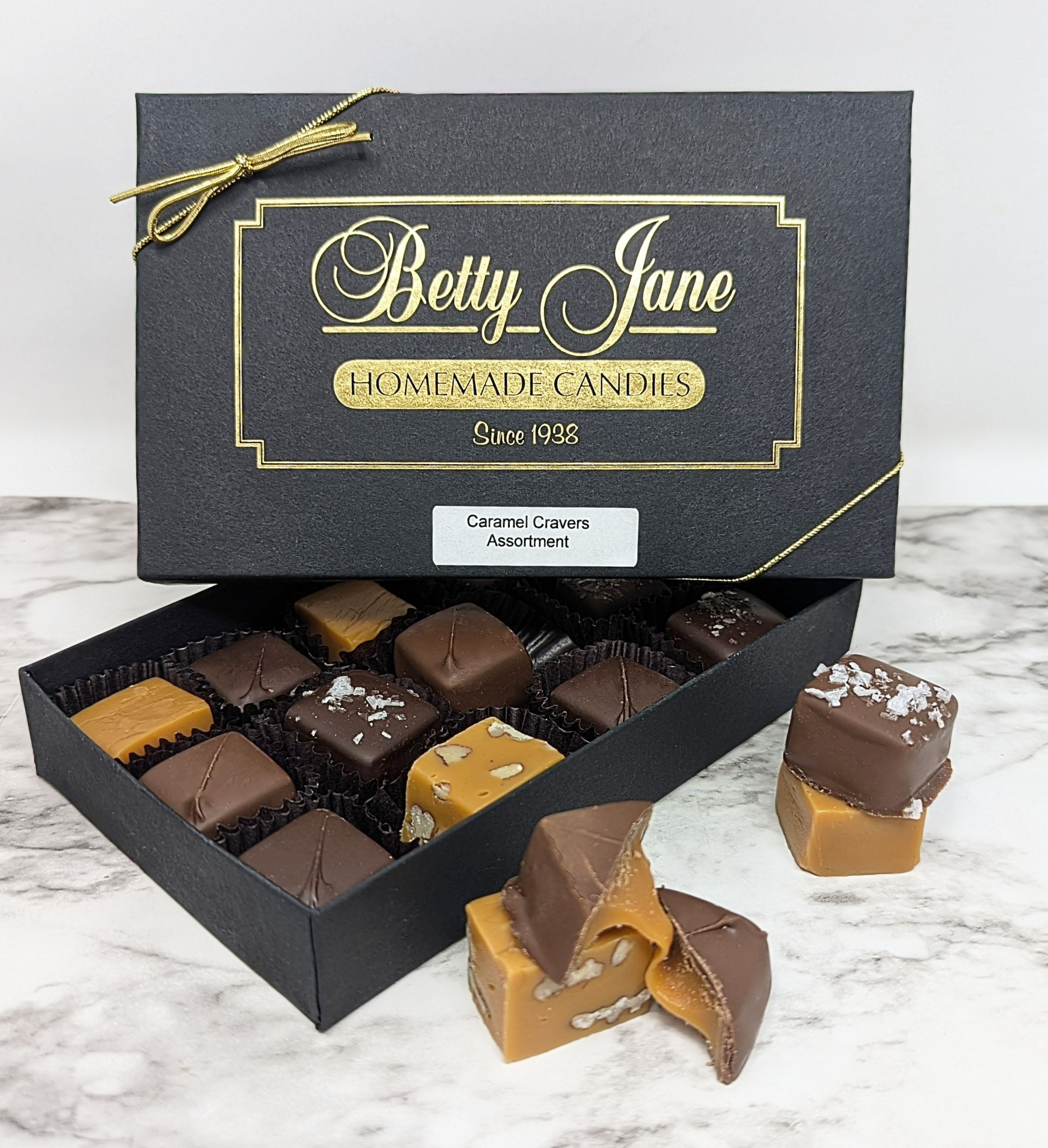 Our homemade creamy caramels arranged in a popular assortment ofMilk Chocolate Caramels